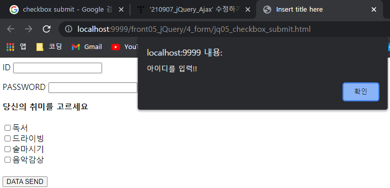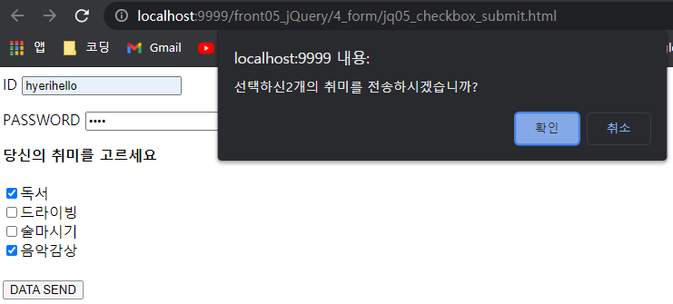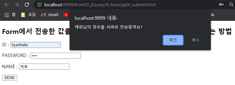 - Form에서 전송한 값을 Jquery에서 받아서 처리한 후 서버로 전송하는 방법